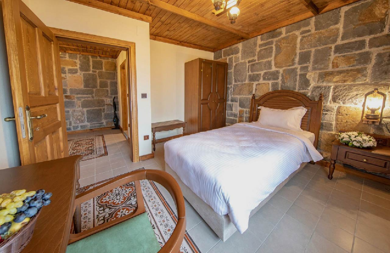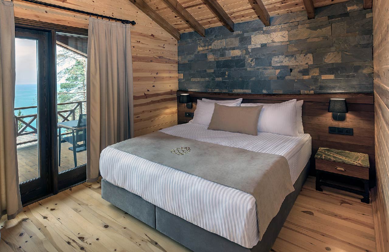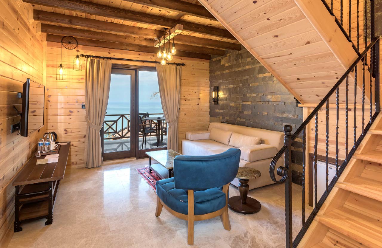 وجميعها مفروشة على الطريقة التقليدية الطرابزونية مما يجعل هذه الاكواخ مميزة بتفاصيلها الداخلية و اطلالتها الجبلية الخارجية لتعيش التجربة الريفية على أكمل وجه.